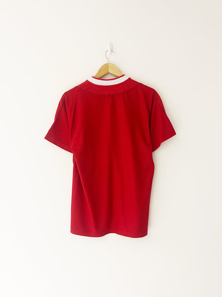 INFO – Home shirt as worn as Liverpool finished 4th and 5th in respective Premier League campaigns under manager Gerard Houllier. The side won the 2002/03 Worthington Cup, beating Manchester United 2-0 in the final. Players in the squad included Gerrard, Hyypia, Baros, Heskey, Hamann, Riise