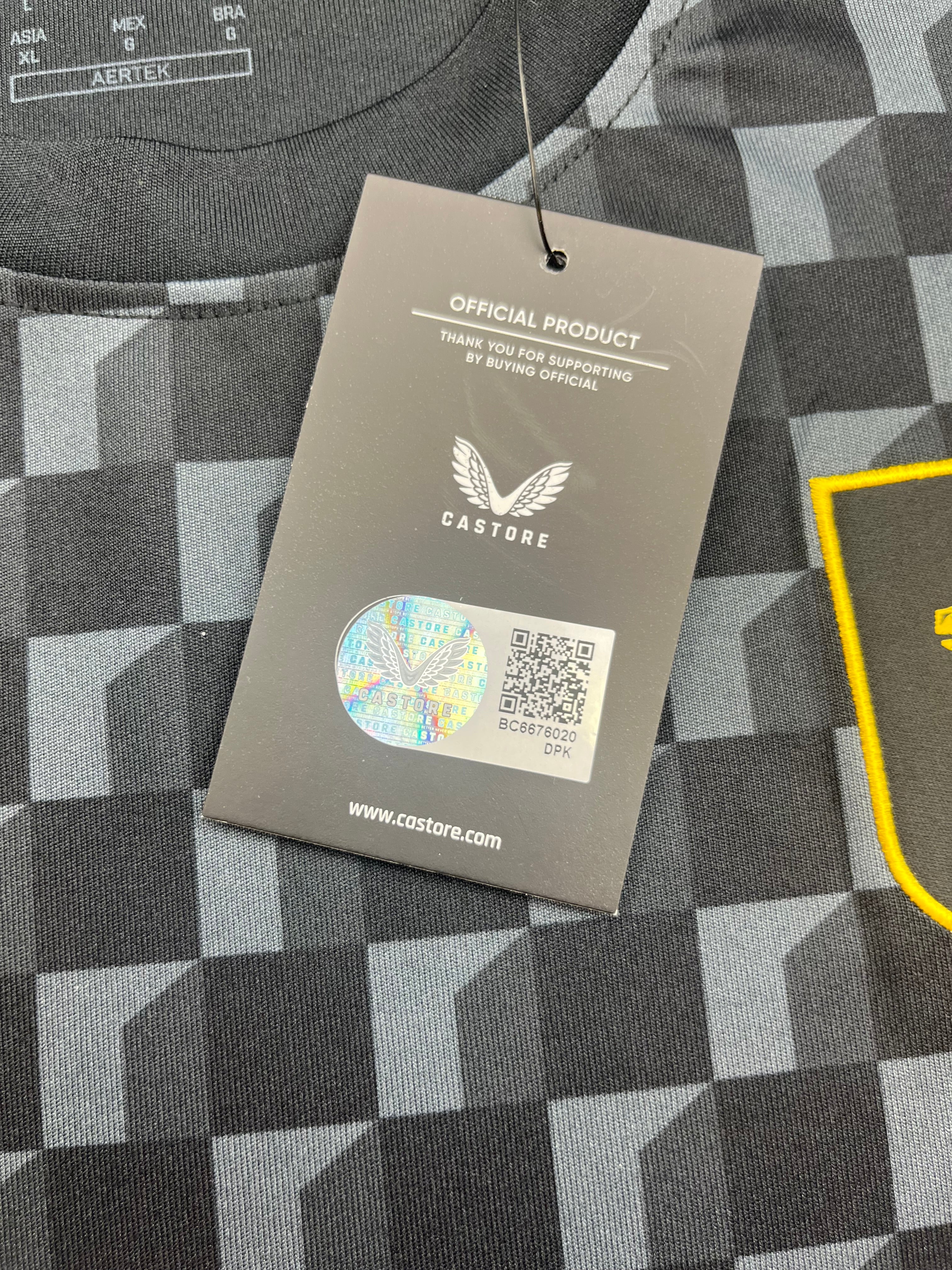 FEATURES - Club crest is stitched, Castore logo and sponsor are printed, original tags
