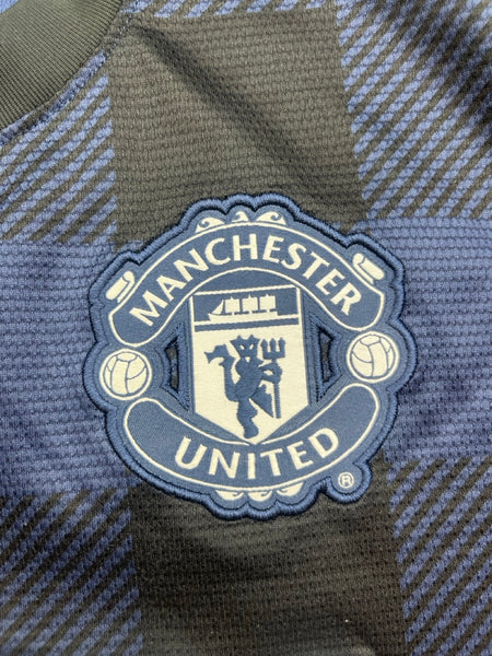 INFO – Away shirt as worn as Man Utd finished 7th in the Premier League after a turbulent season which saw David Moyes sacked as manager. Players in the squad included Rooney, Evra, Van Persie, Jones, Valencia, Vidic